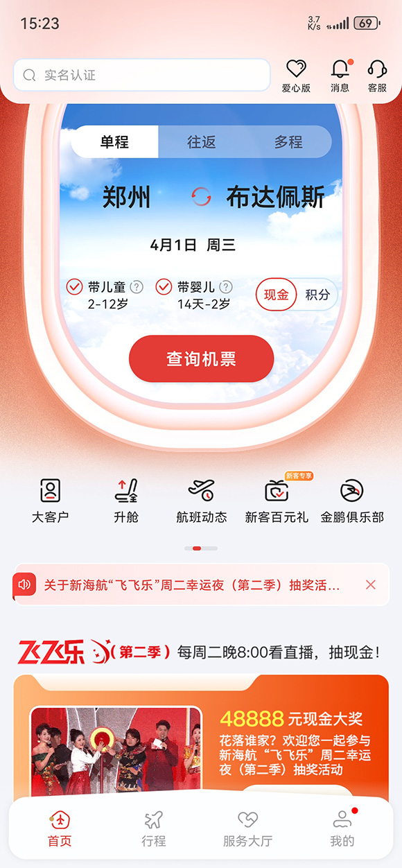 1 打開海南航空App,點(diǎn)擊【服務(wù)大廳】。