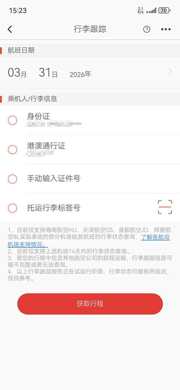 根據(jù)提示輸入證件號、行李號均可查詢行李,找行李就像查快遞一樣方便!