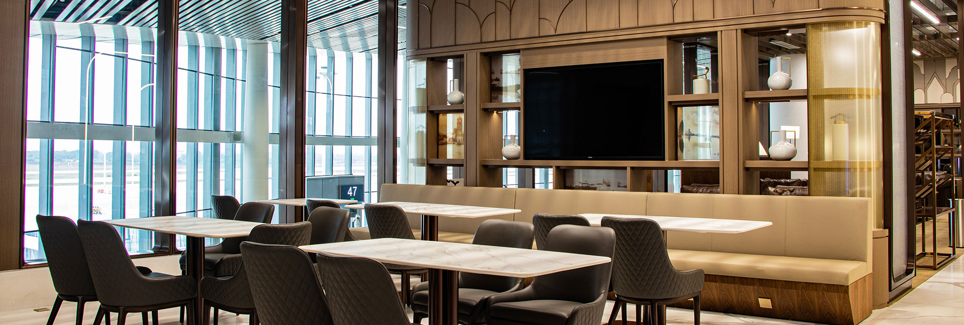 海南航空貴賓室位于海口美蘭國際機(jī)場T2航站樓西側(cè)4樓。貴賓室面積約1283㎡,分為海翼軒與金鵬閣。