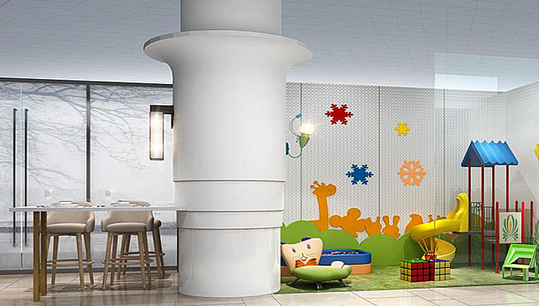 區(qū)內(nèi)色彩鮮艷,設(shè)置安全防沖撞背景墻,多功能滑梯秋千組合,適合 3-6 歲的孩子游玩。獨(dú)立母嬰室內(nèi)配備了嬰兒打理臺(tái)、洗手池以及軟硬紙巾。