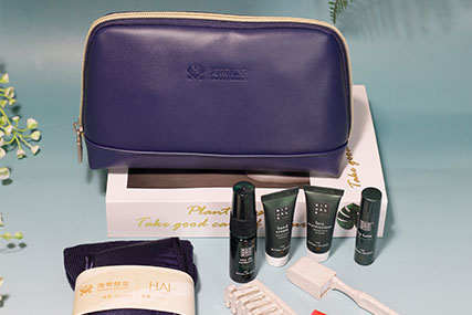 在國際遠(yuǎn)程航線的公務(wù)艙,海南航空甄選了由荷蘭知名居家香氛品牌Rituals特別定制的仿皮革材質(zhì)的洗漱包。此款洗漱包手感柔軟,設(shè)計簡約時尚,彰顯品質(zhì)。包內(nèi)提供同品牌“靜”JING系列的唇膏、面霜及護手霜,以蓮花與紅棗的清新香氣帶來寧靜的感受,靈感源自中國傳統(tǒng)文化對“靜”的獨特詮釋。耳塞、眼罩、牙具組、襪套等舒適用品一應(yīng)俱全,全方位提升旅途中的舒適與放松體驗,煥發(fā)由內(nèi)而外的平和之美。(注:航線產(chǎn)品配備以實際情況為準(zhǔn))。