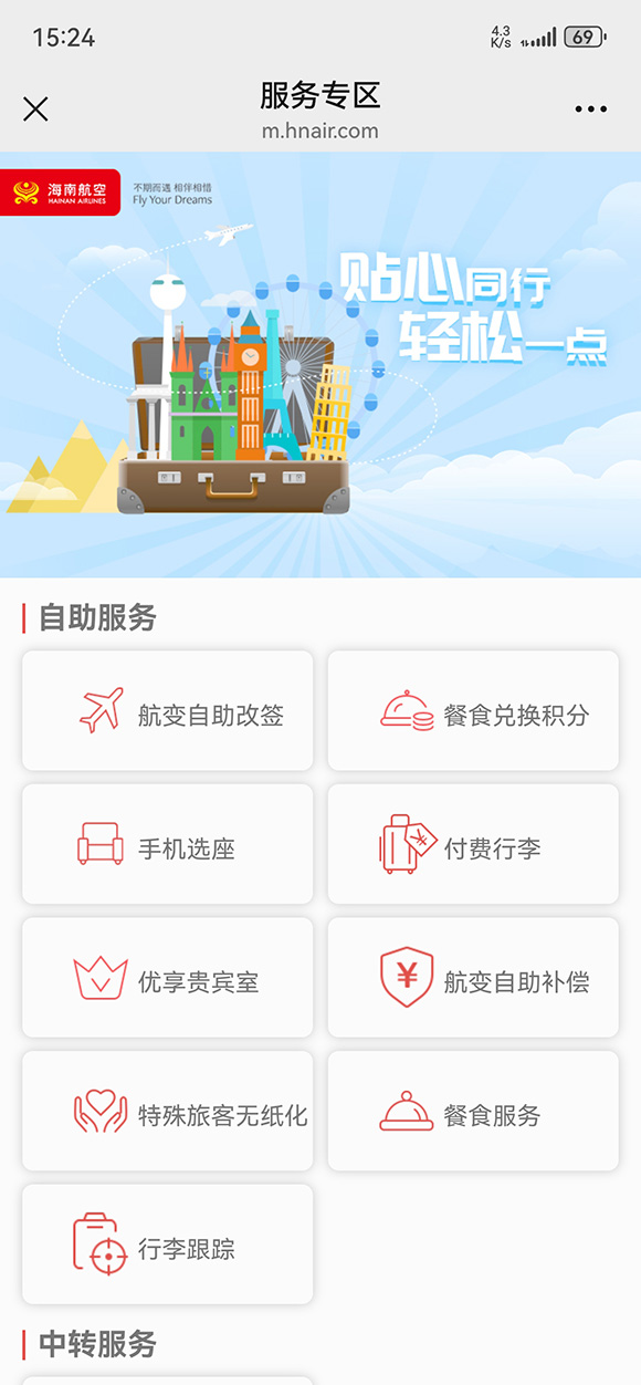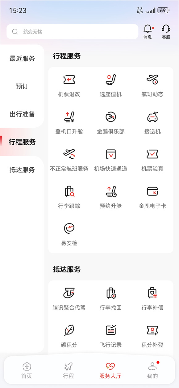 2 點(diǎn)擊【行程服務(wù)】-【行李跟蹤】。