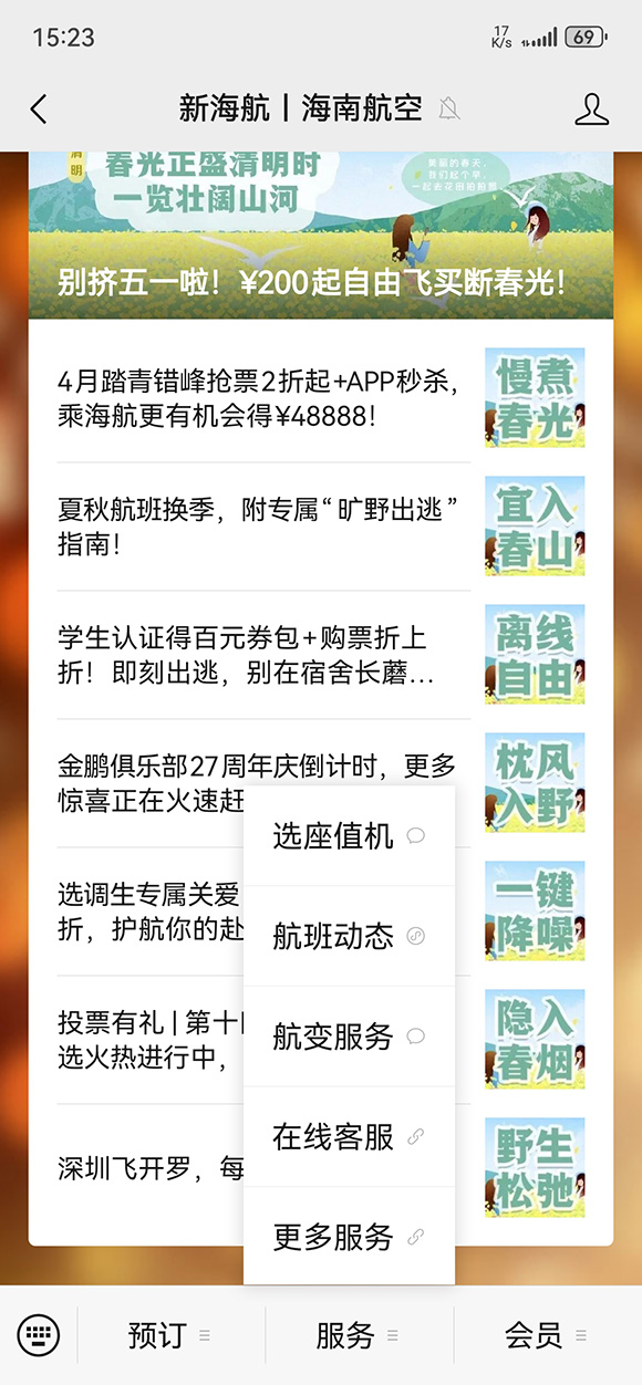1 進(jìn)入海南航空服務(wù)號點(diǎn)擊【更多服務(wù)】。