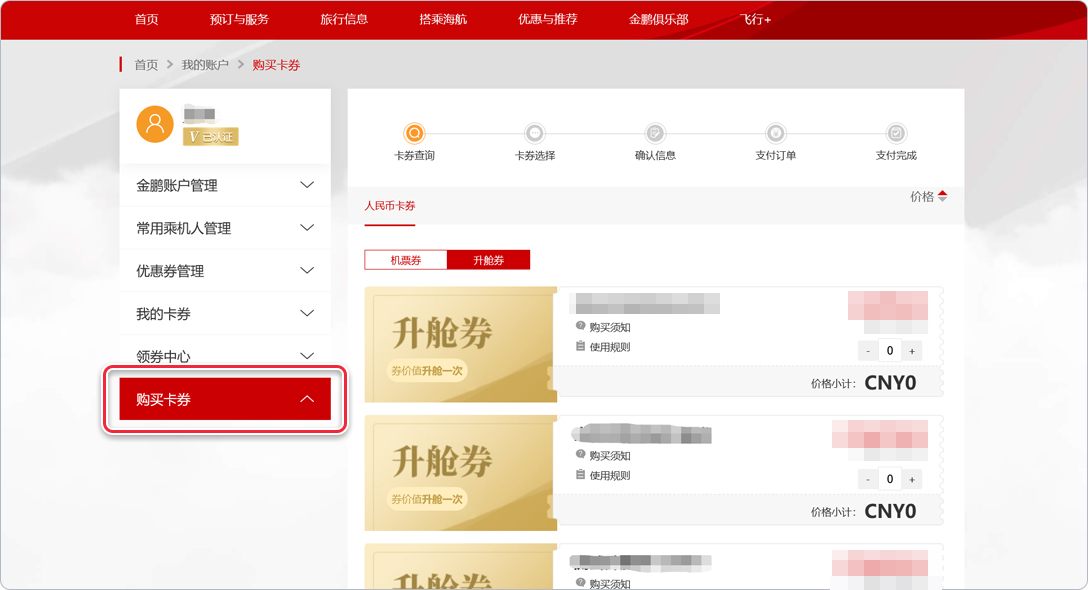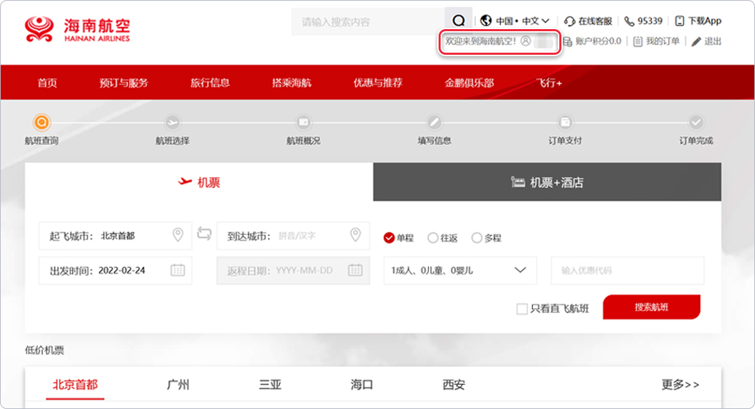 海南航空官網(wǎng)已注冊用戶可購買及使用升艙券。