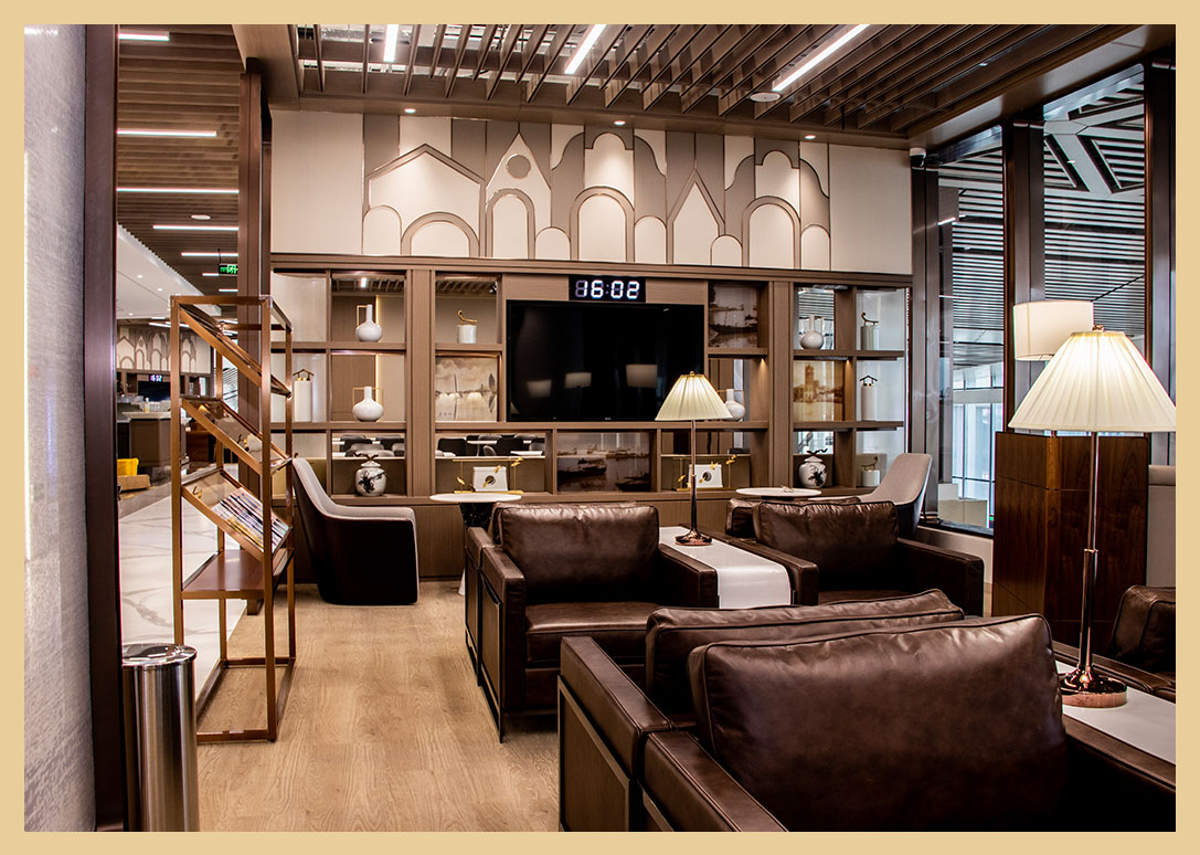 海南航空貴賓室位于海口美蘭國際機(jī)場T2航站樓西側(cè)4樓。貴賓室面積約1283㎡,分為海翼軒與金鵬閣。