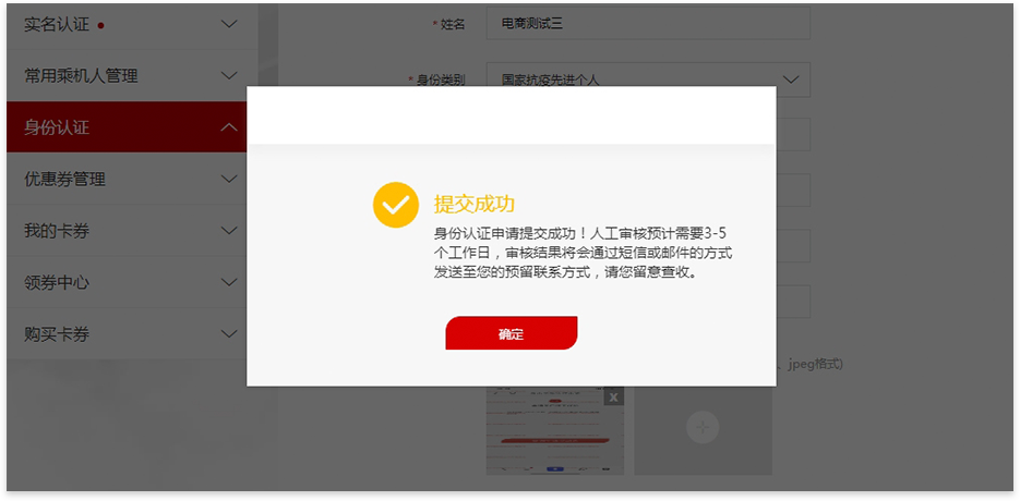 4.提交認(rèn)證申請后人工審核需要3至5個工作日,審核通過系統(tǒng)將自動更新您的身份狀態(tài),審核不通過將通過短信或郵件告知失敗原因,請按照要求重新提交材料。