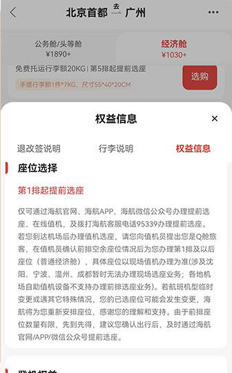 旅客可通過海南航空官網(wǎng)、APP、支付寶小程序、微信小程序、微信公眾號和客服熱線95339辦理提前選座、值機服務。到達機場后辦理值機選座,請向值機員提出您是Q艙旅客,在值機員確認前排空余座位情況后可辦理第1排及以后座位,具體座位以現(xiàn)場值機辦理為準(涉及沈陽、寧波、溫州、成都暫時無法辦理現(xiàn)場選座業(yè)務;各地機場自助值機設備不支持辦理前排選座業(yè)務) 。若航班機型臨時變更或遇其它特殊情況,已選座位可能會發(fā)生變更,海南航空將為您重新安排座位,特殊旅客及已申請?zhí)厥夥盏穆每驼埱巴斯す衽_辦理提前選座/值機手續(xù)。由于前排座位數(shù)量有限,先到先得,建議確認出行后,及時通過海南航空官網(wǎng)/APP/微信公眾號提前選座。